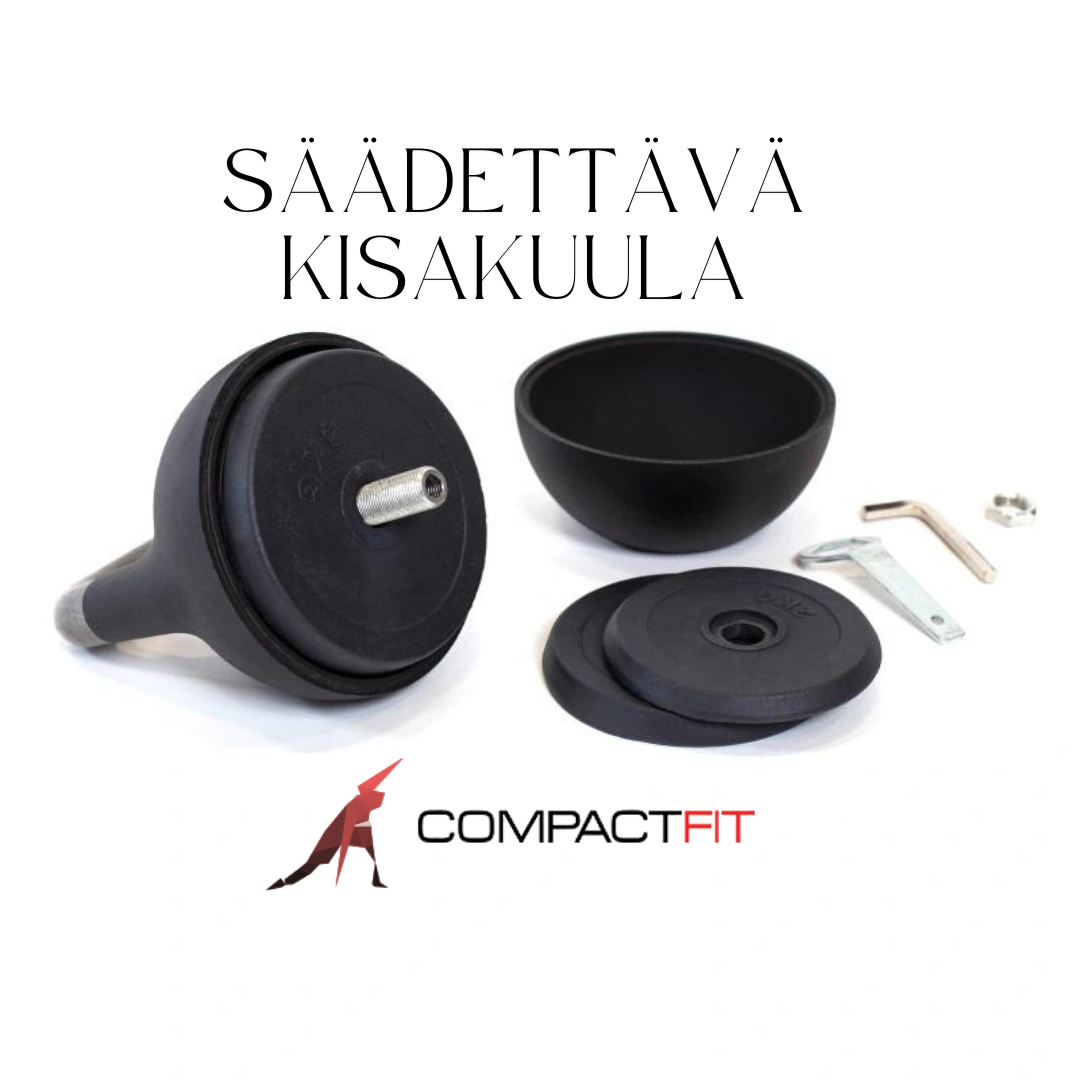 Säädettävä malli sisältää enemmän kokovaihtoehtoja mitä normaalisti kahvakuulista on tarjolla. Voit säätää kokoa jopa yhden kilogramman välein: 12kg/14kg/15kg/16kg/17kg/18kg/19kg/20kg/21kg/22kg/23kg/24kg/25kg/26kg/27kg/28kg/29kg/30kg/32kg.